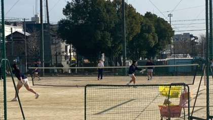 ソフトテニス部は、日当たりの良い場所で思いっきりボールをラケットで打っていました^_^