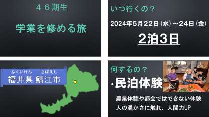 5月22日〜24日までということで、2年生のうちから事前指導を行います。