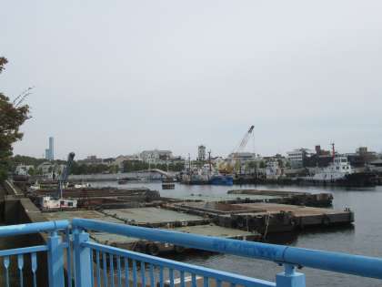 公園の「展望スポット」から。大正内港と橋の眺めです。