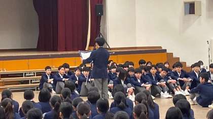 生徒会長から、卒業生へお礼の言葉を送り、在校生が「旅立ちの日に」を合唱しました。