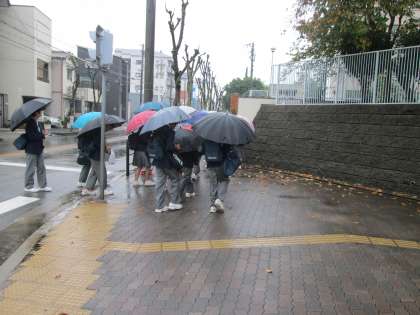かなりの雨量で、ズボンやスカートもびっしょり。