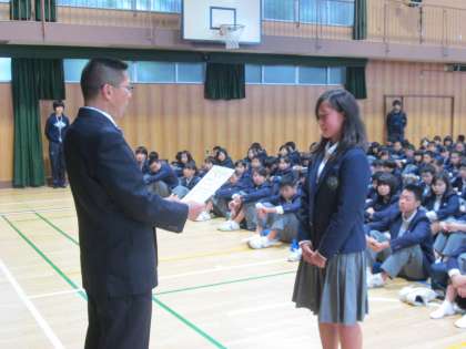 認証式に続き、新役員の進行で、全校集会を行いました。