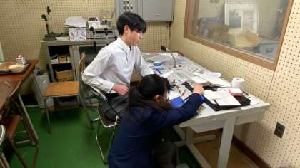 文化委員さんが放送室でお昼の放送を流してくれています。何かトラブルがあったのでしょうか?放送が遅れてしまいました。