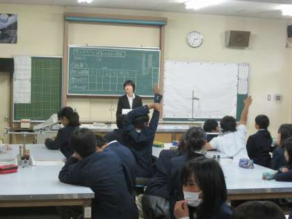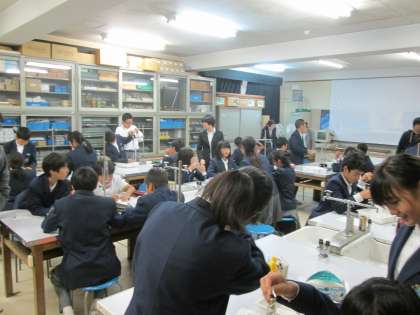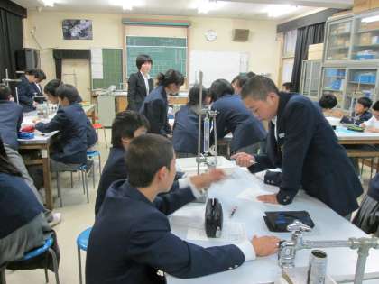 理科室での実験。ばねばかりを使った、力の大きさの関係を調べました。