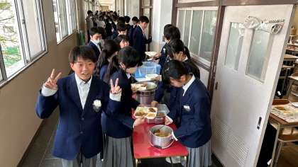 カレーライスの中には、ハート型や桜の花型、星型等のラッキーにんじんが入ってるよ。誰の器に入っていたかな?