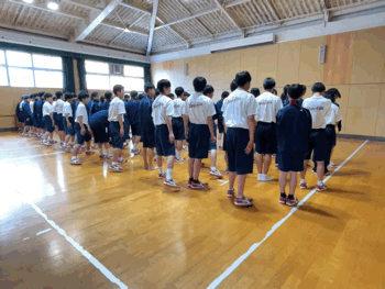 隊列を一斉に変化させています。一発ではなかなかそろいません。(T ^ T)