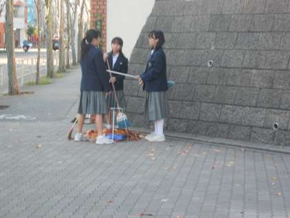 今朝は吹奏楽部員が、落ち葉を集めてくれました。感謝!
