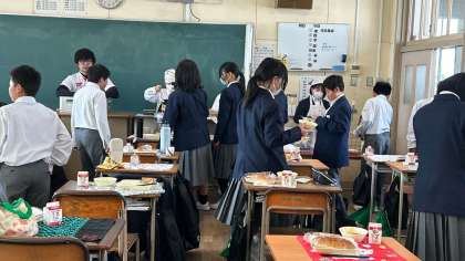 今日はスパゲッティーをカレースープにしています。カレーうどんとはちょこっと違うところがこの給食のポイントです。