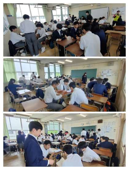 各クラスで民泊班に分かれて楽しそうに作成していました。