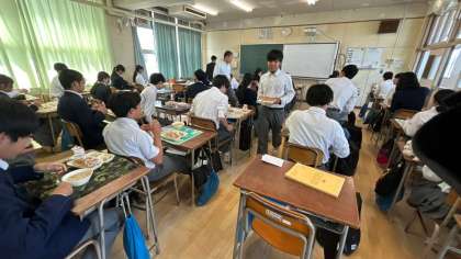 かつおには、DHAとEPAが多く含まれています。脳の働きを活性化させ、血液をサラサラにする効果が期待されています。さらにビタミンも豊富。今日はガーリックマリネ焼きですが、たたきなどもおいしいですよ。ぜひ食べてくださいね。
