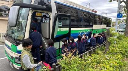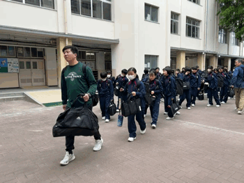 9時過ぎに各学級がバスに乗車しました。大阪府岬町にある府立青少年海洋センターに向けて、108名の生徒が「移住」!果たしてどのような体験が待っているのやら、、。楽しみですねー(^^)