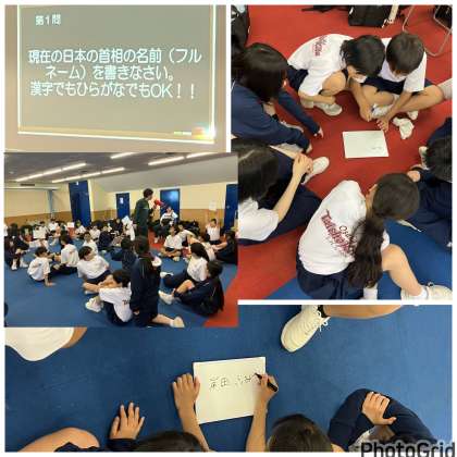 カッターボートを待っている人たちは、班対抗クイズ大会をしています。