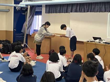 楽しかったクイズ大会。優勝した班は表彰状をもらいました。