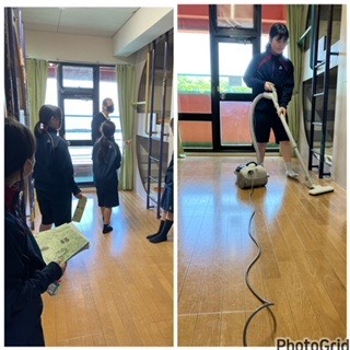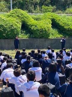 野外炊飯や部屋の掃除など順調に進み、予定より早く退所式をしています。