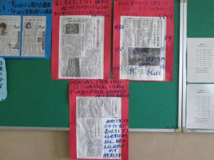 1年校舎の廊下に、その事件に関する記事が貼られています。