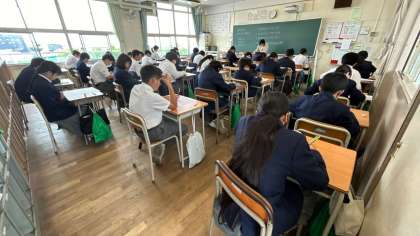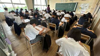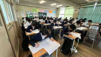 国語、社会、数学の3科です。解答用紙にコツコツと書いていきます。めざせ、100点!