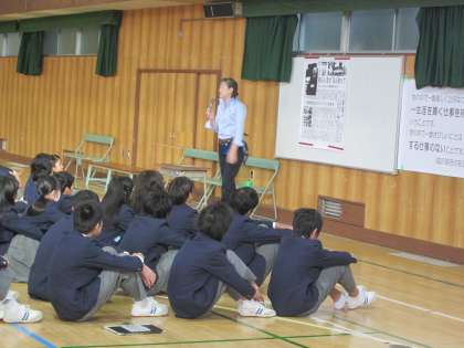 職場体験の取り組みに合わせて、今日は働くことの意義、福沢諭吉の名言、大阪老舗の苦労話について、お話がありました。