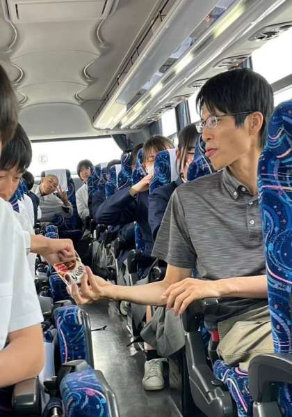 バスの運転手さんや先生にも気配りを忘れていません!