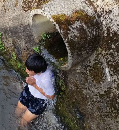 プチ滝行をしたり楽しそうでしたが、見た限り網の中はサンダルだけでした。