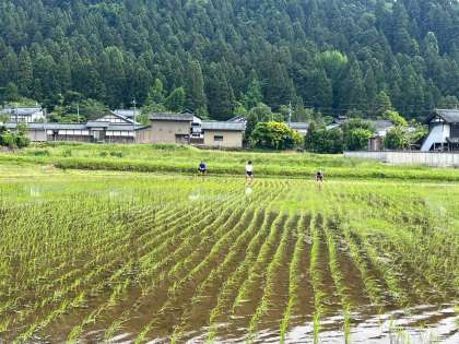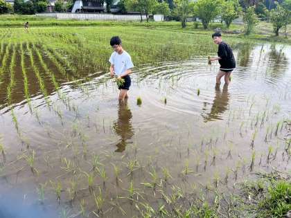 田植えのお手伝いをしているみたいです。