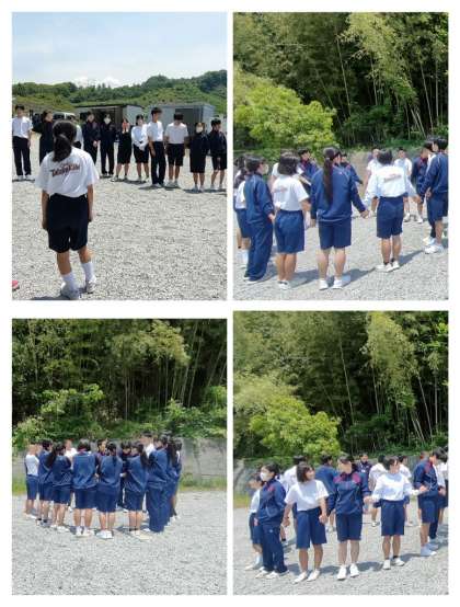 下の名前順にチーム分けをして手を繋いだ形を何方のチームが早く出来るか競争しました。