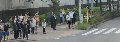 保護者の方々や部活動の生徒、教職員がお迎えしてくれました。