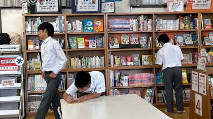 図書室の運営は、図書委員の皆さんが行っています。テキパキと貸出、返却業務をこなします。
