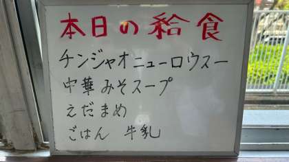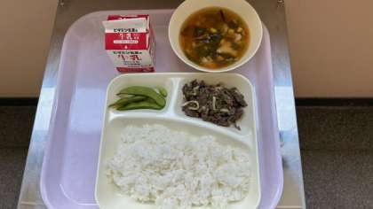 今日の給食は、チンジャオニューロウスー、中華味噌スープ、枝豆です。