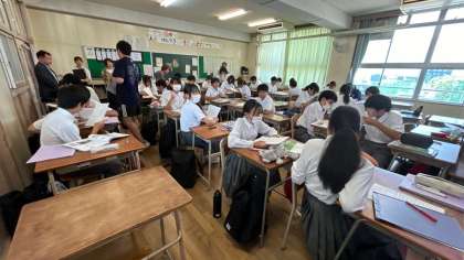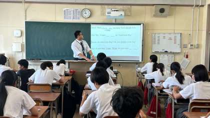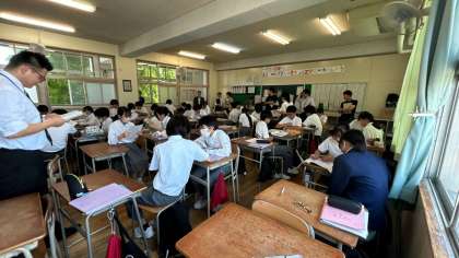 教育実習最終日。2年生の英語の授業に参加しました。大学の先生もお越しになり、緊張感が漂うかな?と思われましたが、時には笑いが出るなどいい雰囲気で進んでいきました(^.^)