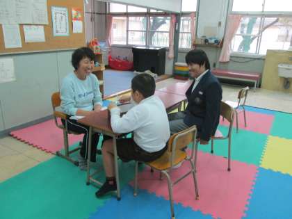 教室で児童さんの勉強をサポートしたり、運動場でともに遊んだり。