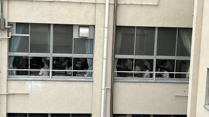 3年生も期末テスト頑張ってます。窓越しですが、ひしひしとやる気を感じます(^.^)