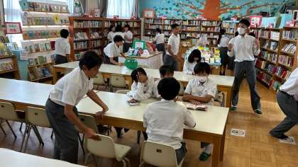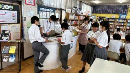 お昼休みには、たくさんの生徒が図書室に来ています。6冊もの本を借りていった生徒さんも!
