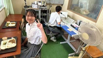 今日で1学期の給食は終わりです。放送室を覗いてみると、文化委員の生徒の皆さんが、今日も元気な放送をしてくれています。いつもいつもありがとう!