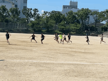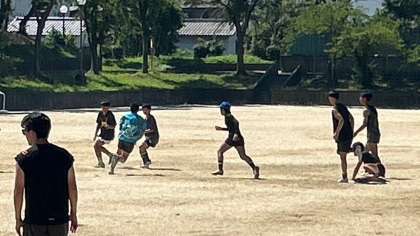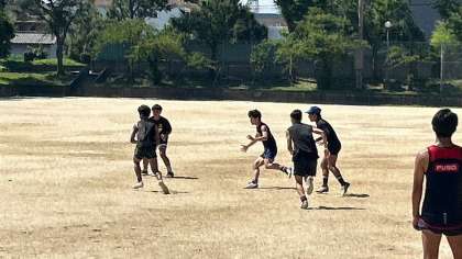 早朝よりラグビー部が、千島グラウンドで練習をしています。
