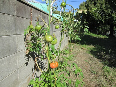プール横の畑。夏野菜の王様「トマト」がまだ頑張っています。