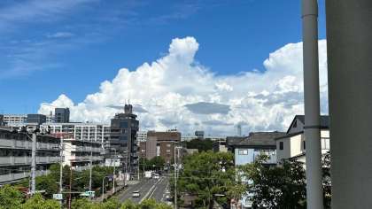 校舎3階から外をのぞくと、遠くに夏の雲「入道雲」が見られました。この雲を見ると夏本番って感じですねー(暑!)