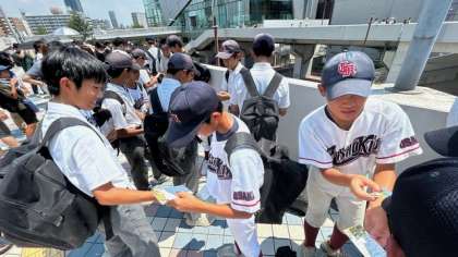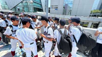 大阪市の軟式野球部所属の中学生を、オリックス・バッファローズの試合に招待していただき、観戦後に入場行進。大正北中の選手は、素晴らしい入場行進ができました。