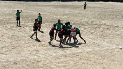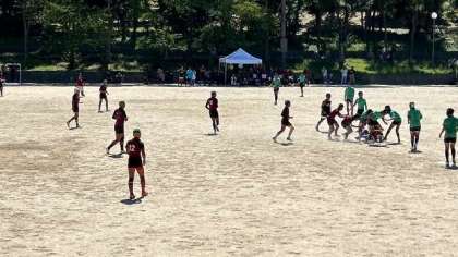 ラグビー部が、千島グラウンドで練習試合を行っています。