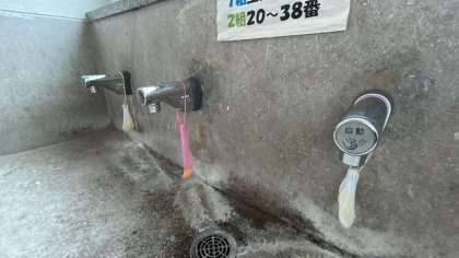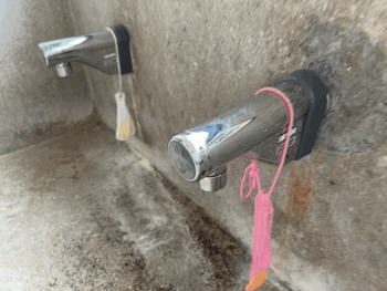 夏休み中に水道工事が行われて、一部の蛇口をのぞき自動になりました。