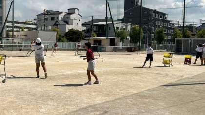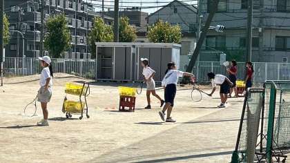 グラウンドがカラカラなので、少し埃っぽいですが、生徒はよく頑張っています^_^