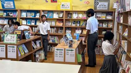 たくさんの生徒が入館!本を選んでいます^_^