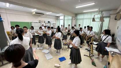 令和6年9月16日(月)午前、泉尾東小学校で「敬老会」が開催されました。本校の吹奏楽部が、昨日に引き続きオープニング演奏の大役を引き受けています。