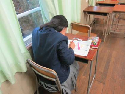 女子生徒が最後まで残って、英語に励んでいます。