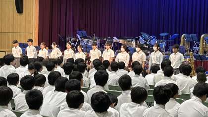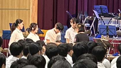 1組に表彰状と、優勝トロフィーが手渡された後、3年生の各学級の指揮者と伴奏者の生徒に、担任の先生から感謝状が送られました。よくがんばりました。