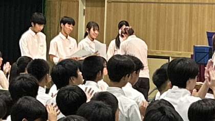 また、各学年合唱の指揮者と伴奏者の生徒には、各学年の主任の先生が感謝状が手渡されました。ありがとうございました。