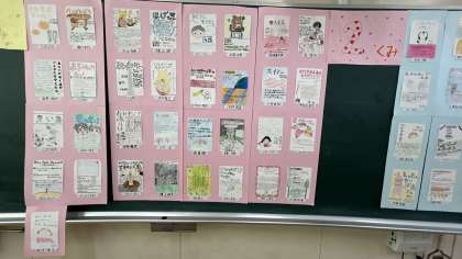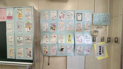 1年生の国語科で作成した「読書郵便」では、お勧めの本を伝えるために作成しました。