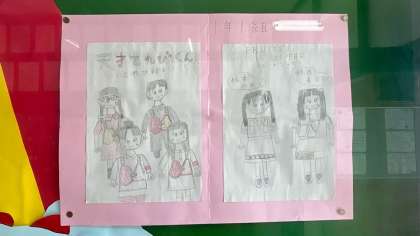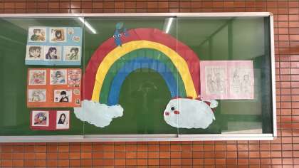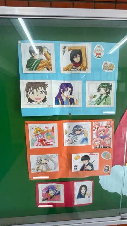 玄関入って右手の掲示板に、美術の作品が掲示されています。お越しの際はぜひご覧ください。