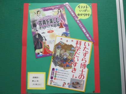 図書室からの連絡が、工夫されて展示されたり、貼り出されています。