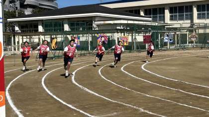 100メートルと短いですが、2年生がんばってね!どのクラスが1位でしょうか?