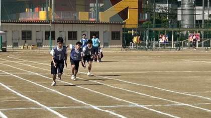 やはり最後は3年生。上手にバトンパスを行い、一位を獲得できました。おめでとう(^∇^)